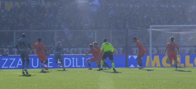 第22分钟,佛罗伦萨打入一球,但裁判鸣哨在先,攻方犯规进球无效